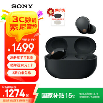 旗舰店索尼(SONY)WF-1000XM5 蓝牙耳机真无线降噪耳机 运动入耳式 新款降噪豆5 1000XM4升级款 蓝牙5.3 黑色 国行