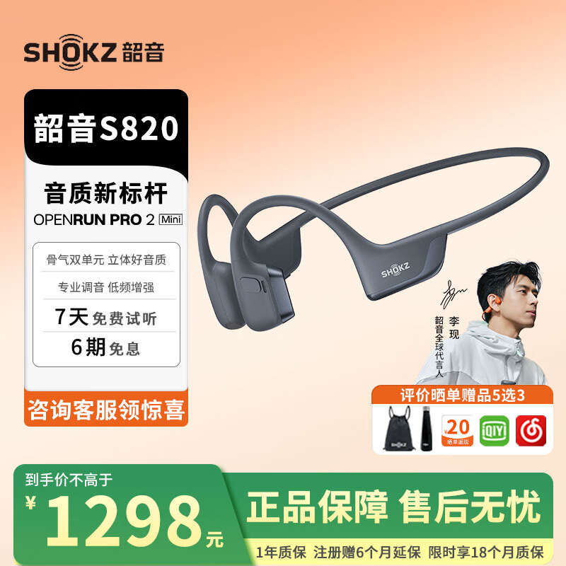 旗舰店SHOKZ 韶音OpenRun Pro 2 S820骨传导耳机无线开放式蓝牙耳机主动降噪防尘抗汗适应苹果华为 MINI黑