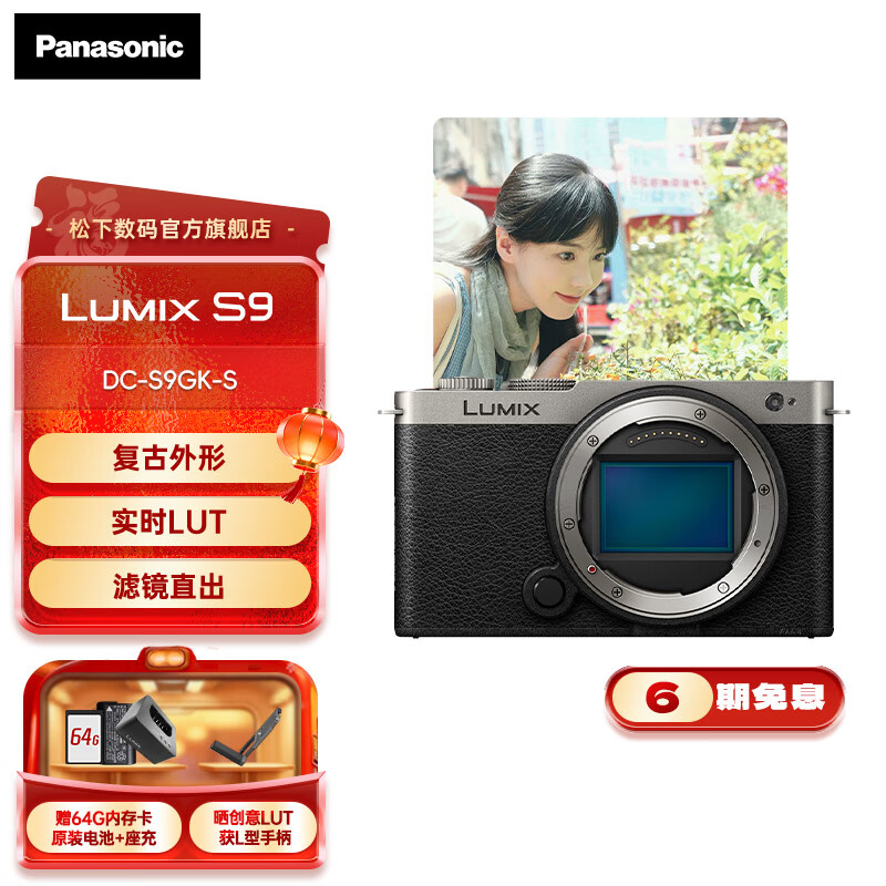 旗舰店松下(Panasonic)【官方直营】S9 全画幅微单数码照相机 L卡口 复古外形 轻巧便携 实时Lut 滤镜直出 相位混合对焦 S9单机身【银色】