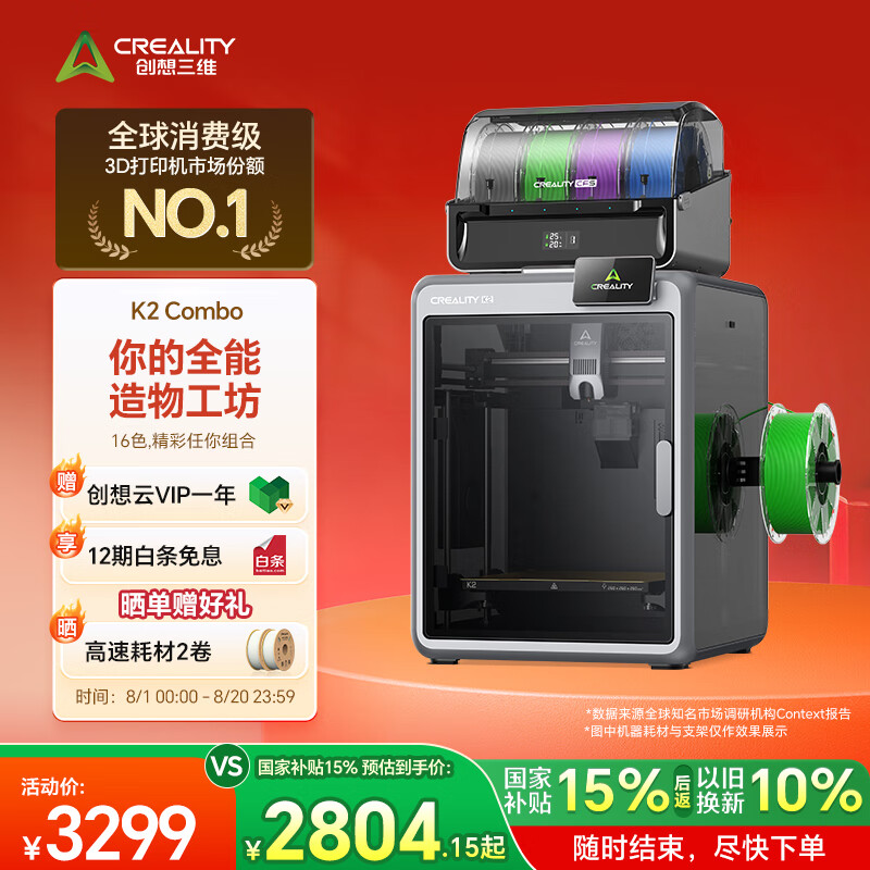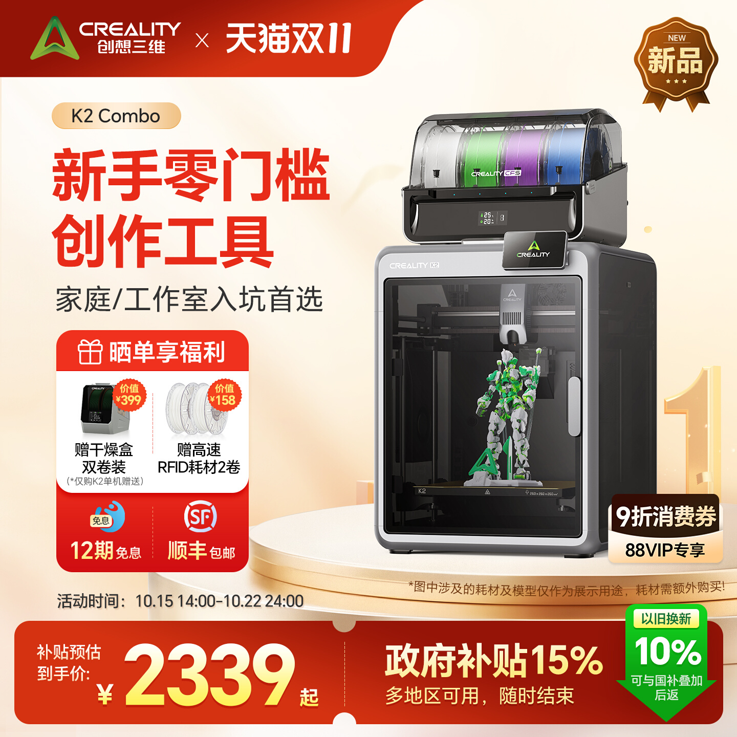 旗舰店【新品上市】创想三维K2 Combo 多色3D打印机 开箱即用 自动调平AI摄像头 家用桌面级高速打印 【大陆版】