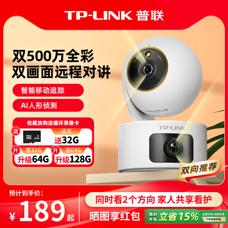 旗舰店普联TP-LINK摄像头无线家用双镜头监控手机远程360度室内全彩摄影