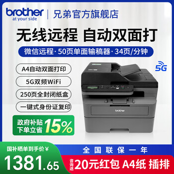 旗舰店兄弟(brother)DCP-L2548DW黑白激光双面家用打印机手机无线有线 自动输稿一体机复印扫描 DCP-L2548DW(50页输稿器,远程打印)