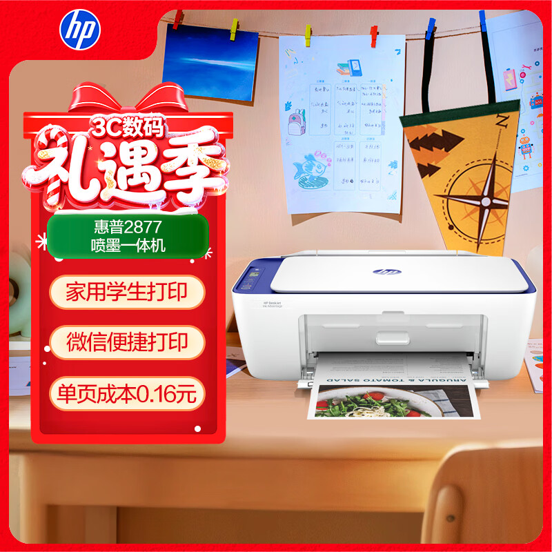 惠普(HP)DJ 2877 无线彩色喷墨家用打印机学生家用 大印量打印扫描复印多功能一体