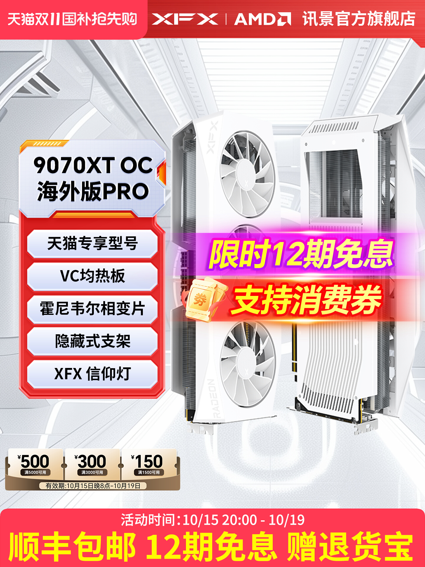 旗舰店【12期免息】XFX讯景9070XT 9070 16G游戏显卡amd电竞台式电脑diy
