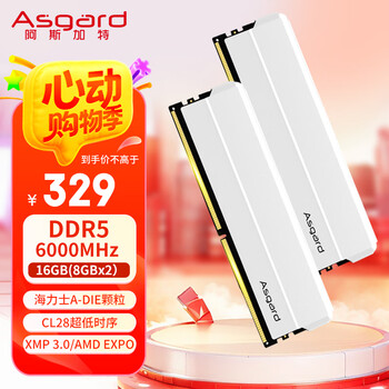 自营阿斯加特(Asgard)16GB(8GBx2) DDR5 6000 台式机内存条 海拉 马甲条 海力士A-die CL28 星光银
