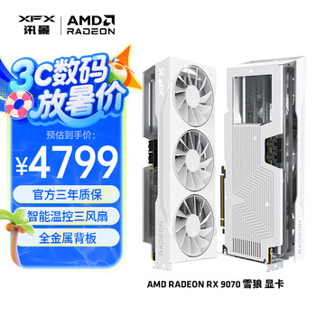自营讯景(XFX)AMD RADEON RX 9070 雪狼 16GB 白色 全新电竞游戏设计智能学习台式电脑独立显卡