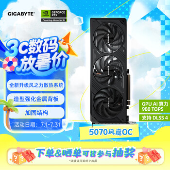 自营技嘉(GIGABYTE)5070显卡 风魔OC GeForce RTX 5070 WindForce OC SFF 12G DLSS4电竞设计AI智能学习电脑独立显卡