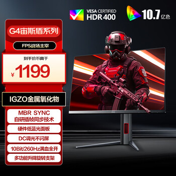 自营AOC 27英寸2K 240Hz超频260Hz FastIPS 1ms广色域 HDR400硬件低蓝光 FPS游戏电竞显示器 宙斯盾Q27G4Z