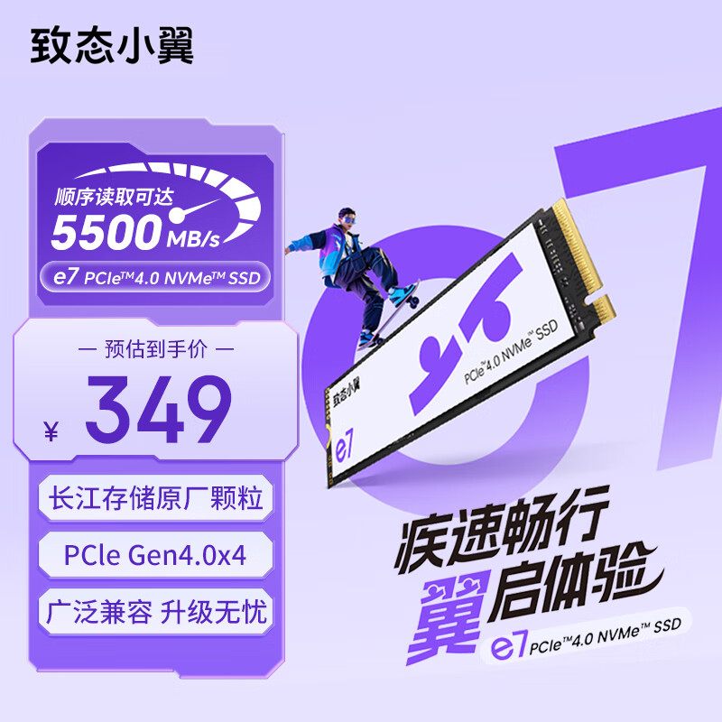 旗舰店致态小翼e7 SSD固态硬盘 M.2接口 PCIe4.0 长江存储原厂颗粒 AI电脑配件 【500G】 小翼e7