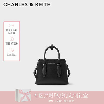 旗舰店CHARLES&KEITH插带兔耳托特包手提斜挎包婚包包女包生日礼物情人节CK2-50781362 Black黑色 M