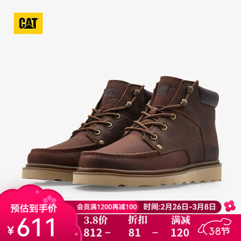 旗舰店CAT卡特季新品男士户外休闲工装靴高帮复古单鞋 棕色 44