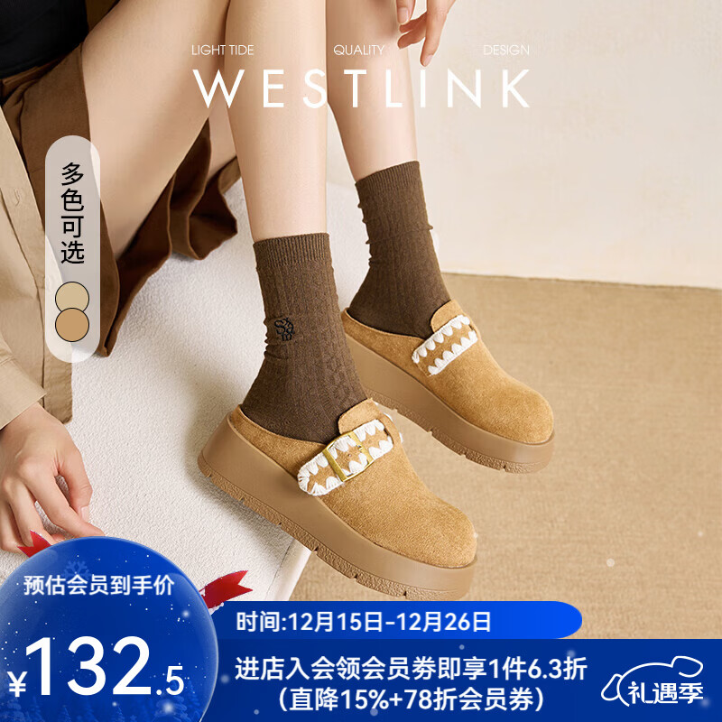 旗舰店西遇(Westlink)西遇厚底勃肯鞋半拖女2025新款秋季花边一脚蹬懒人鞋增高松糕女鞋 黄色 35 (225)