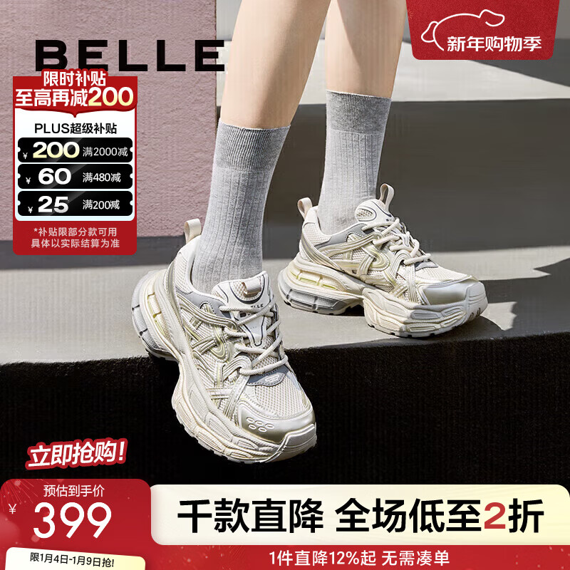 旗舰店百丽(Belle)张凌赫同款星河轨迹老爹鞋女网面透气休闲厚底运动鞋B2199CM4预售 【周雨彤同款】金色 (第一批) 37