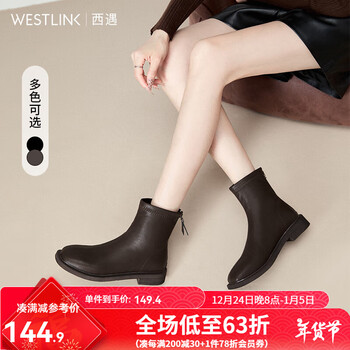 旗舰店西遇平底短靴女单靴2024新款秋冬英伦风百搭切尔西靴黑色瘦瘦靴 棕色 35
