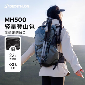 旗舰店迪卡侬双肩背包MH500轻量化旅行徒步登山背负系统大容量城市轻户外 冰川灰 22L