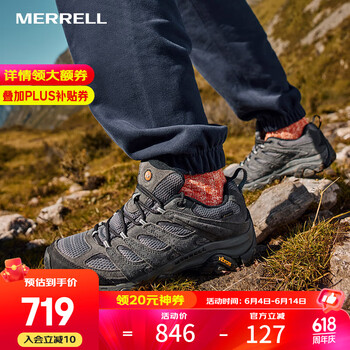 旗舰店迈乐(Merrell)户外减震徒步鞋MOAB3 GTX防水低帮透气轻量舒适耐磨防滑登山鞋 J035799 灰(男) 42