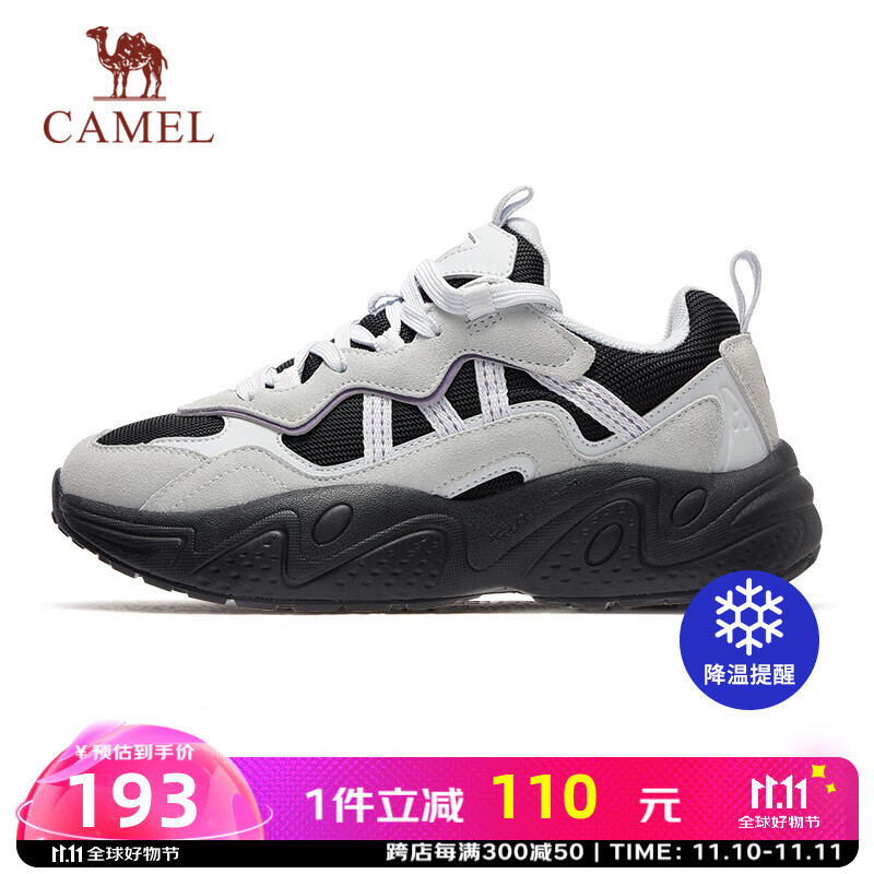 旗舰店骆驼低帮休闲男鞋厚底增高老爹运动鞋子 K24C097620,黑/荞麦灰 ,女 38