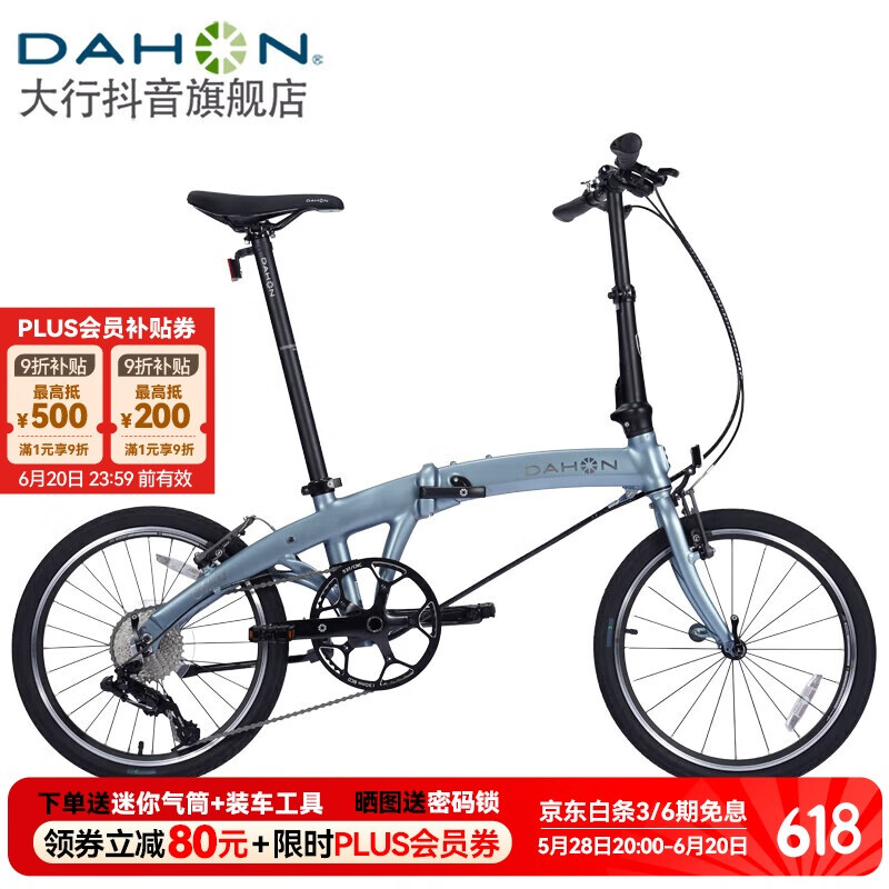 自营大行(DAHON)P10/D10折叠自行车20英寸10速铝合金成人通勤V刹 PAA003 消光灰蓝