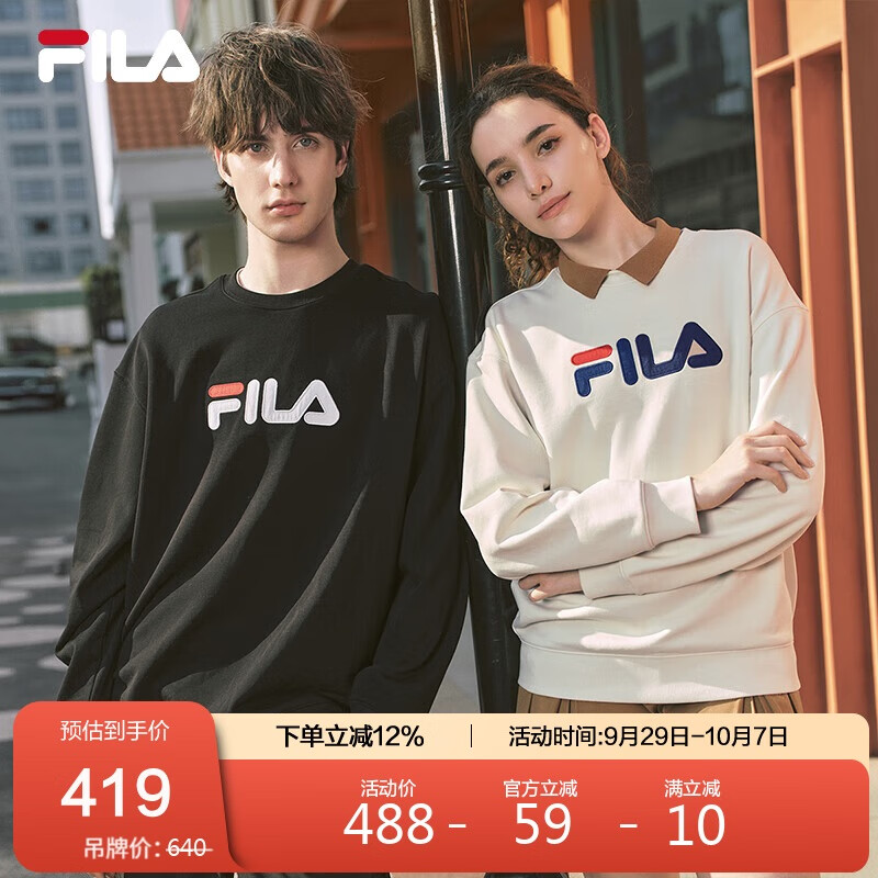 自营FILA 斐乐官方情侣款套头卫衣2025秋季休闲宽松针织长袖上衣