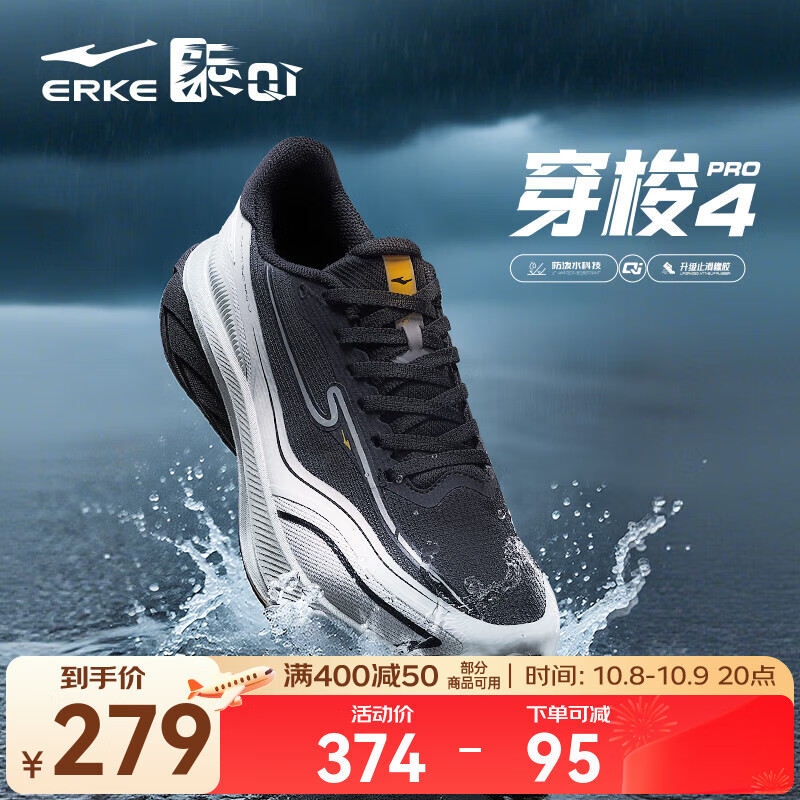 旗舰店鸿星尔克穿梭4pro男鞋2025秋季新款防泼水跑步鞋轻便防滑运动鞋减震跑鞋 正黑/浅灰绿 42