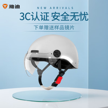 雅迪电动车头盔 3C认证自行车摩托车电瓶车四季女士夏季头盔安全帽四季通用夏天半盔 简约3C款灰色(赠送样品镜片) 新国标3C认证