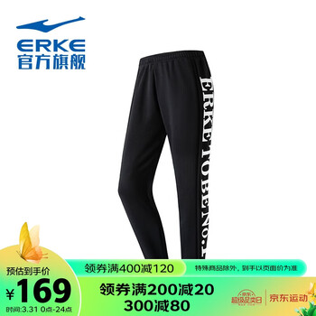 自营鸿星尔克官方旗舰针织长裤休闲运动裤女子九分裤 正黑 XL