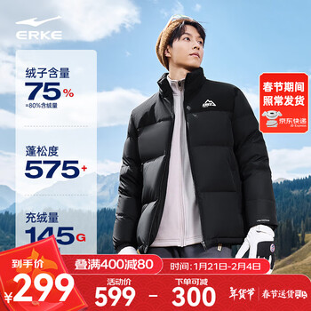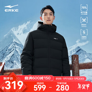 旗舰店鸿星尔克防泼水2.0羽绒服男秋冬新款男士羽绒衣男装保暖防风夹克外套男款 正黑 XL(170-175cm/130-140斤)