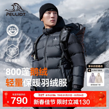 自营伯希和(Pelliot)[经典2.0]鹅绒羽绒服男女冬季户外保暖连帽夹克外套114408281黑L