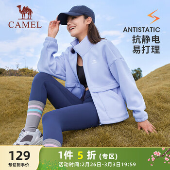 自营骆驼(CAMEL)户外抓绒衣女宽松休闲立领夹克外套 C24CAYL6651 蓝鸢尾 L