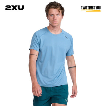 旗舰店2XU Aero系列 短袖t恤男宽松休闲圆领运动夏季跑步速干透气吸汗上衣 雾霾蓝/黑色反光 S