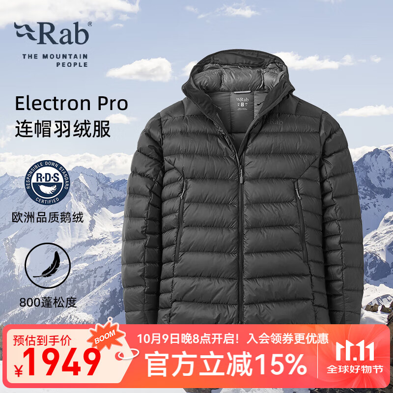 旗舰店Rab睿坡Electron Pro秋冬男士800蓬轻量保暖鹅绒连帽羽绒服 QDB-81 黑色 M