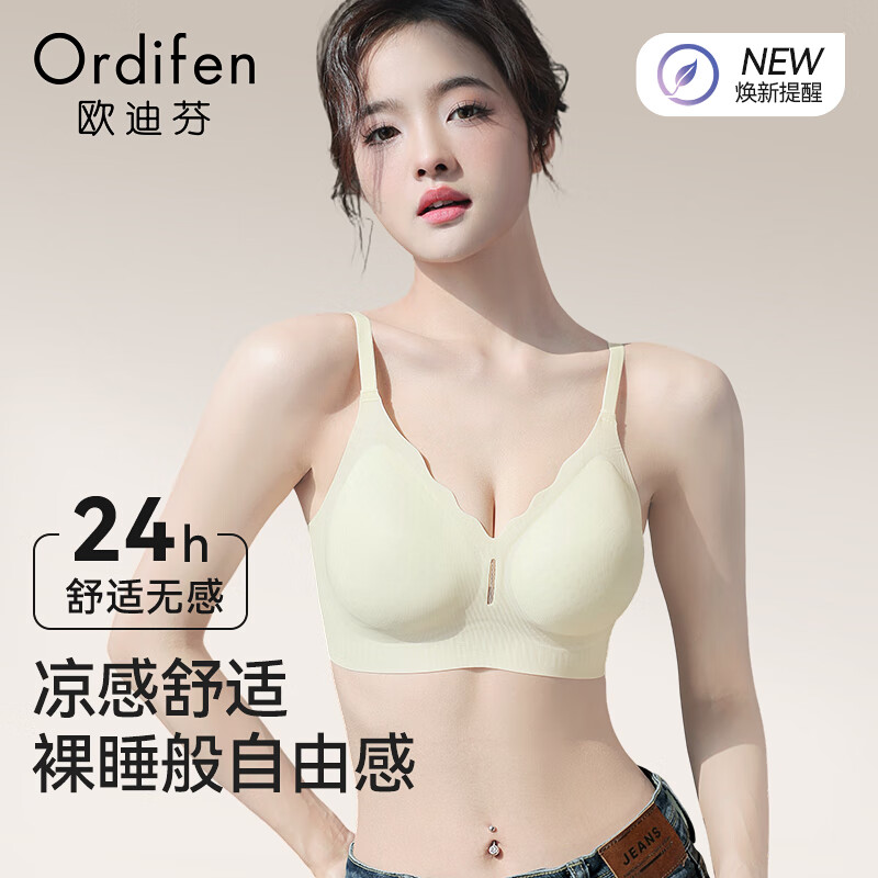 旗舰店欧迪芬无痕内衣女夏季凉感透气亲肤聚拢侧收防下垂软支撑无钢圈文胸罩 香槟 M 【建议80-105斤 34/75ABC】