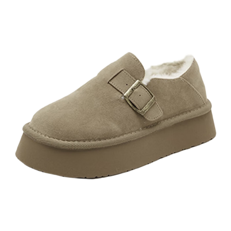 旗舰店西遇厚底加绒勃肯鞋女2024新款冬季毛毛博肯雪地靴外穿保暖棉鞋 棕色 加绒 36