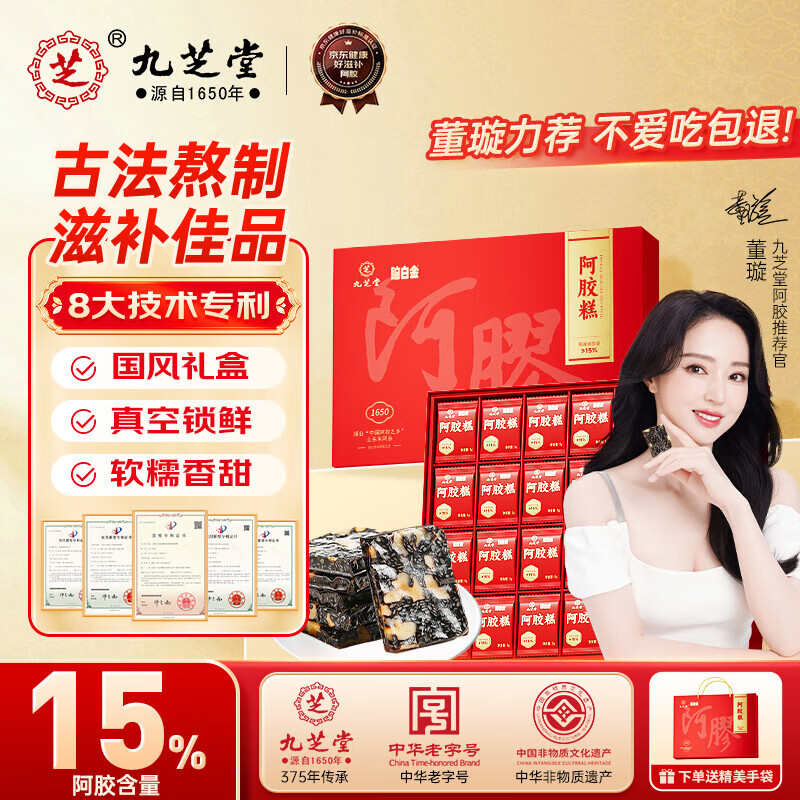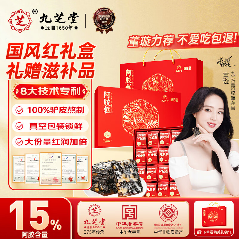 旗舰店九芝堂阿胶糕礼盒460g(92块)15%阿胶含量阿胶食品营养品送妈妈长辈礼物 阿胶糕礼盒装【15%含量】 460g*1盒