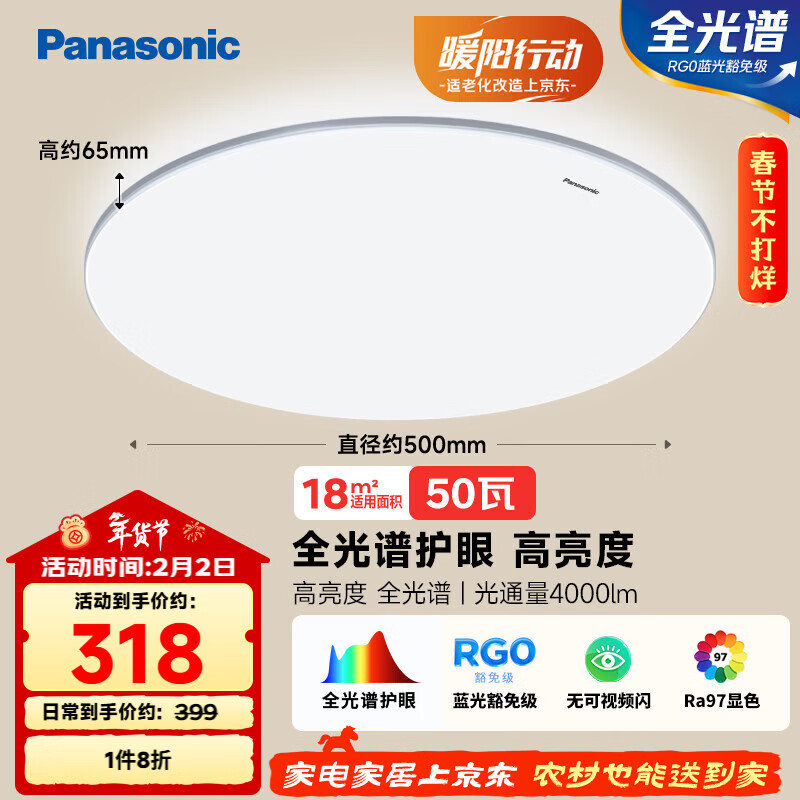 自营松下(Panasonic)吸顶灯卧室灯全光谱护眼银色简约款50瓦 HHXQ5160【包安装】