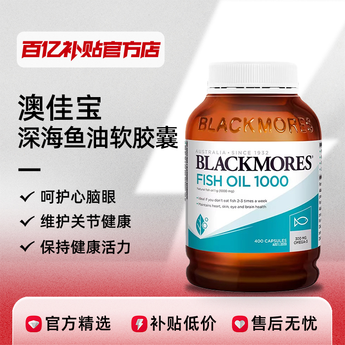 百亿补贴澳洲Blackmores深海鱼油软胶囊400粒Omega3DHA补脑降血脂百亿补贴