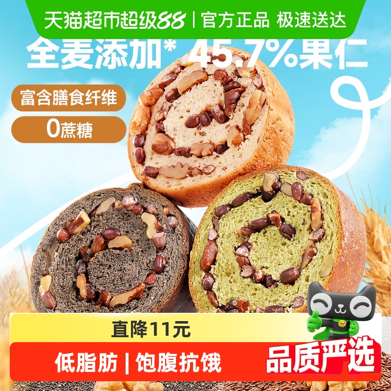 三只松鼠全麦坚果车轮面包五黑味核桃果仁健康零食全麦吐司欧包