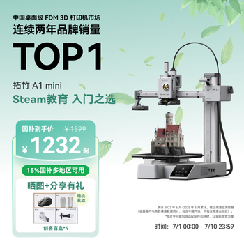 自营拓竹A1mini 3D打印机学生新手友好 儿童Steam教育 桌面家用FDM 全自动调平多色高速bambulab【大陆版】