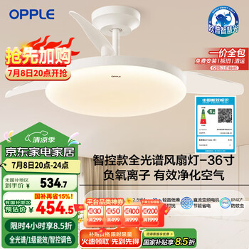 自营OPPLE风扇灯吊扇灯护眼全光谱智能调色LED照明Ra95餐厅卧室吊灯冰风白