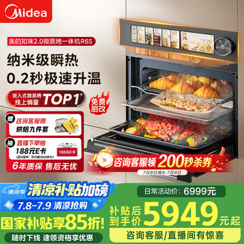 自营美的(Midea)嵌入式微蒸烤一体机GR6S石墨烯涡轮热风温湿智控微蒸烤炸炖5合一纯平全嵌55L烤箱 美的知味2.0R6S