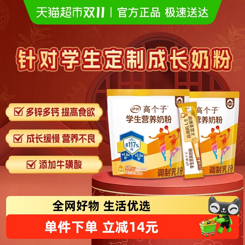 伊利高个子大学生青少年儿童成长营养牛奶粉400g*2袋