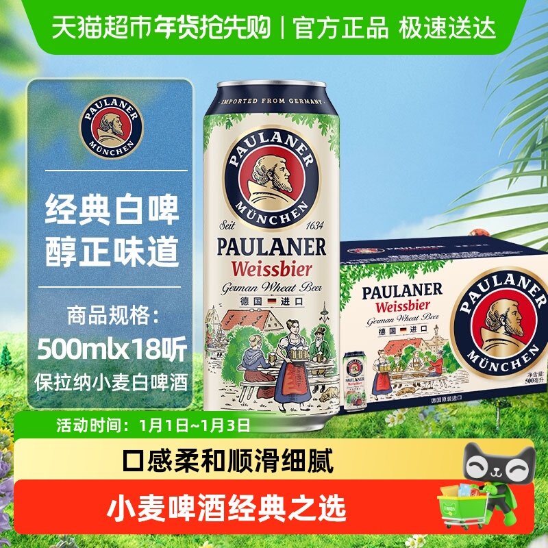 德国进口保拉纳小麦白啤酒整箱装