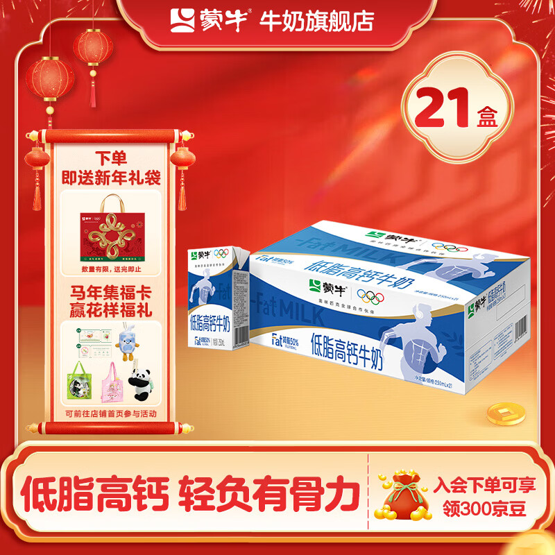 旗舰店蒙牛 低脂高钙牛奶营养美味健身好伴侣礼盒装(部分10月产) 250ml*21盒
