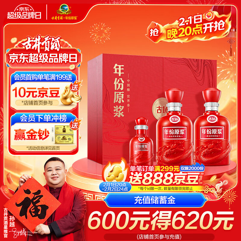 自营古井贡酒 年份原浆古16 浓香型白酒 50度 500ml*2瓶 礼盒装