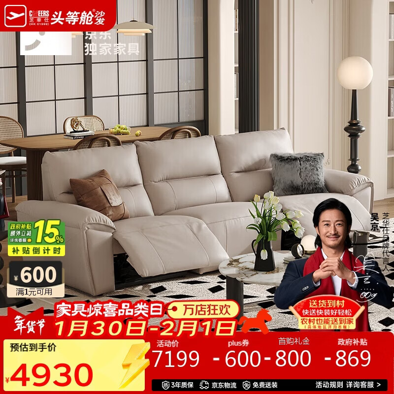 自营芝华仕头等舱大咖沙发30269真皮零靠墙电动沙发白色2.80m中古风沙发客厅