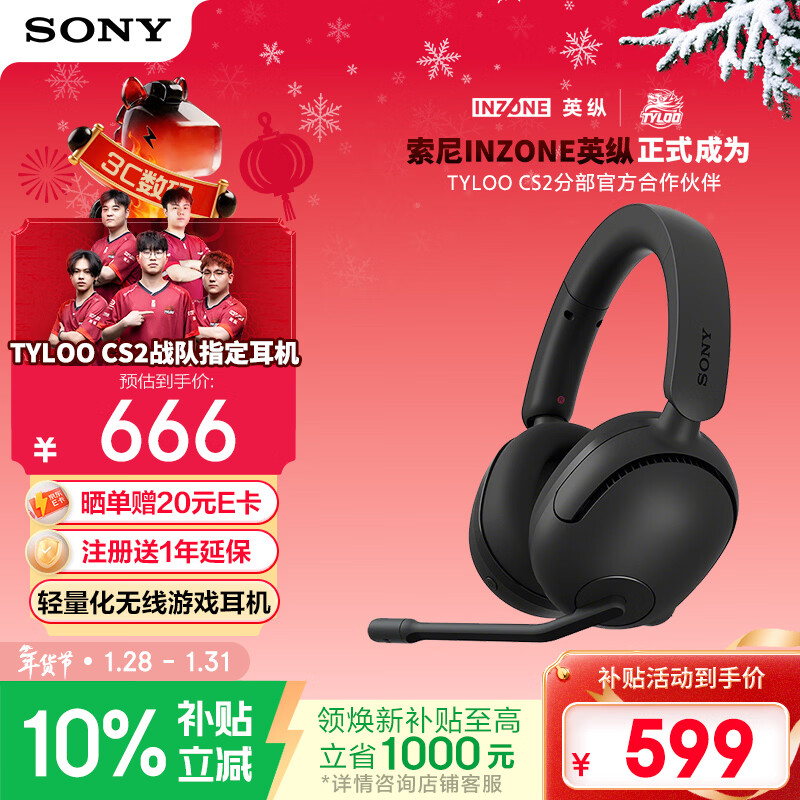 自营索尼(SONY)INZONE 英纵 H5 轻量化无线电竞游戏耳机 虚拟7.1 2.4GHz 3.5mm 黑色 三角洲行动 新年礼物 元旦