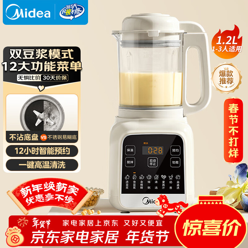 自营美的(Midea)新款破壁机家用小型迷你3-4人用 1.2L轻音多功能自动预约免煮豆浆机 五谷杂粮辅食料理机 补贴 001