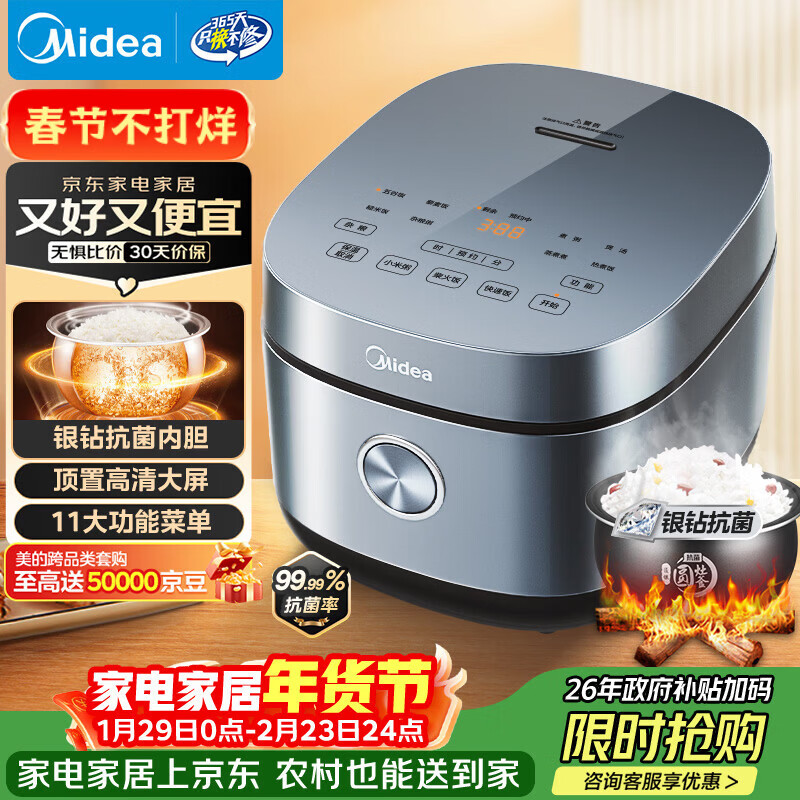 自营美的(Midea)电饭煲电饭锅4L银钻内胆11大菜单家用智能多功能电饭煲大火力米饭锅MB-RE473(3-4人)