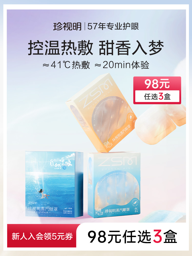 旗舰店【98元任选3盒】珍视明蒸汽眼罩舒缓眼疲劳热敷发热遮光睡眠眼罩