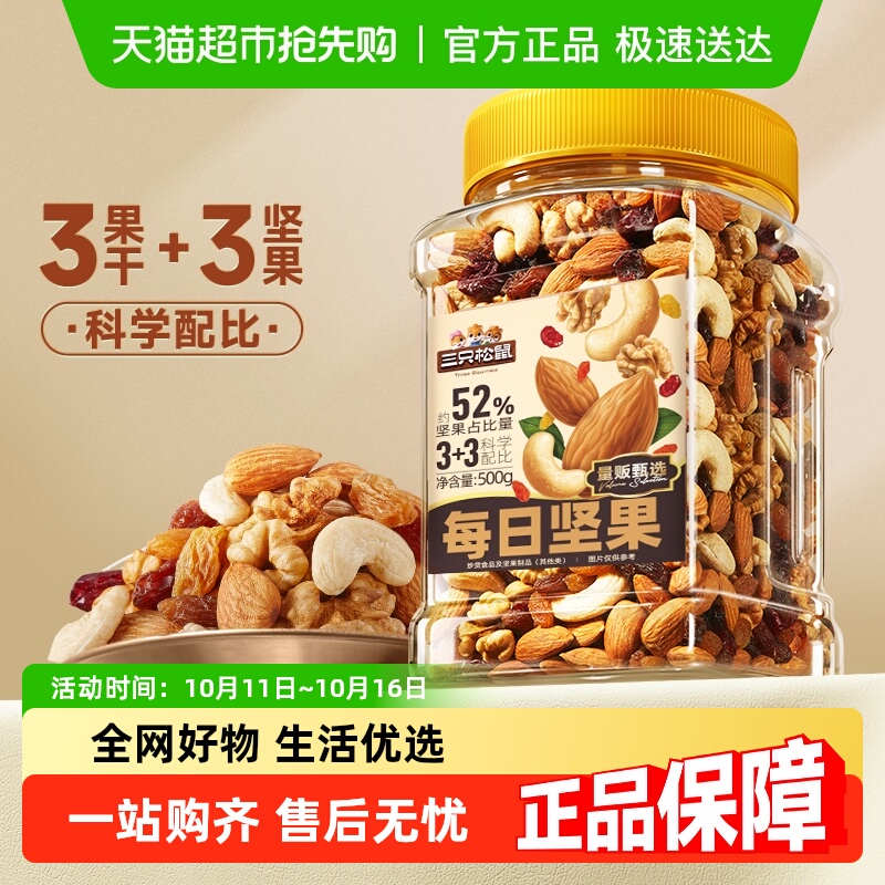 三只松鼠每日坚果量贩罐装混合坚果休闲零食孕妇健康早餐整罐干果
